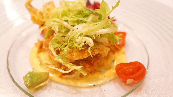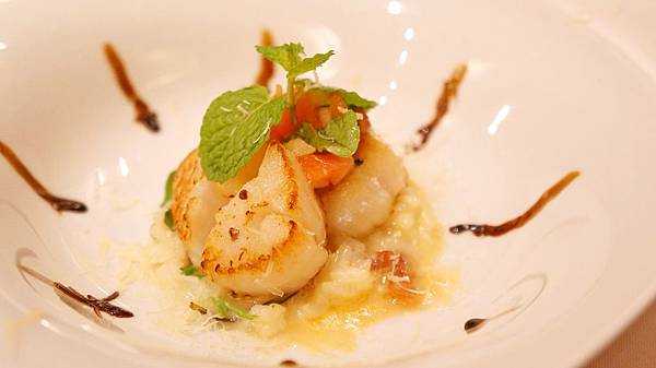 前菜: 炙干貝(下面應該是搭cheese味的source,我有點忘了)