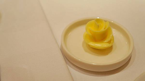 除了比較高級的食材像鵝肝、波士頓龍蝦或是和牛必須要加價,其他的餐點都是單一價。以法國料理來說,一個前菜、湯、主菜跟甜點的4 courses menu只要1180,真的是非常的超值。金童因為常常沒日沒夜的加班所以抱怨有錢沒地方花,所以大家就拼命的拱他撇大錢升級,所以他前菜跟主菜都花了大錢攻頂,前菜加價換了鵝肝,主菜也是直上美國和牛。