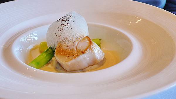 兩道前菜都處理的很好,干貝兩側微焦而中間呈現半熟的完美狀態,可以襯托干貝本身的新鮮。蟹餅老實說就沒那麼讓人有印象,只記得蟹肉絲是真的並非偽裝的假蟹。
