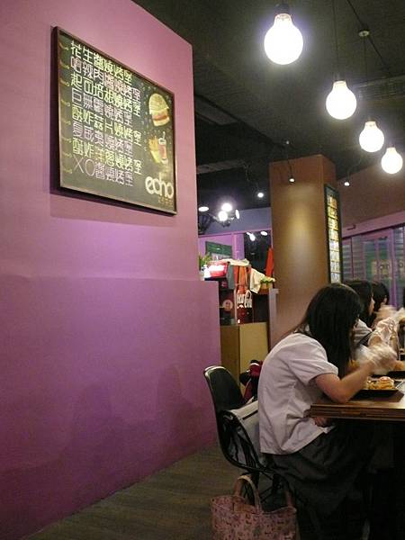 裝潢不像一般美式餐廳那麼運動風或太歡樂,但給人挺舒服自在的感覺。相對於TGIF或Chillis假嗨到爆炸常常高八度的高戲劇張力服務方式,這邊的服務生相對冷靜專業且友善。因為當天剛好遇到忠明高中吉他社在辦迎新,服務生也很誠實的告知可能會有點吵有點慢。好在他們已經開始出餐,所以等待時間也有限。一邊看著高中生玩著「一隻青蛙呱~兩隻青蛙呱呱~三隻青蛙呱呱呱」的破冰遊戲整個覺得好青春。