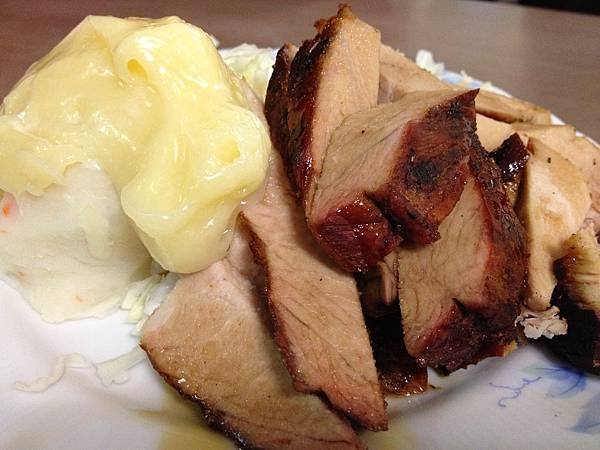 今天介紹的就是一家很老牌的小吃美食,早在1957年就開始經營,70幾歲的阿罵老闆到現在還會坐在旁邊盯場。主力產品就是以之為店名的烤肉沙拉。乍聽之下有點奇怪,烤肉就烤肉沙拉就沙拉,難道像撒尿蝦跟牛丸摻在一起就變撒尿牛丸了嗎?還真的就是這樣!烤肉沙拉就是將醃過的豬瘦肉用炭火直燒後鋪在高麗菜絲上,旁邊再配上店家自製的馬鈴薯沙拉和美乃滋醬,就成為風靡台中超過50年的烤肉沙拉了。說真的相較於明爐燒烤的叉燒肉,炭火直燒的烤肉本身有點略乾,不過沾上帶有甜味又rich的美乃滋醬就搭配的恰到好處,旁邊馬鈴薯沙拉的味道也很好。除了烤肉沙拉以外,還有章魚沙拉、蝦子沙拉跟魚蛋沙拉。今天我們還點了章魚沙拉,其實就是把烤肉換成章魚而已。
