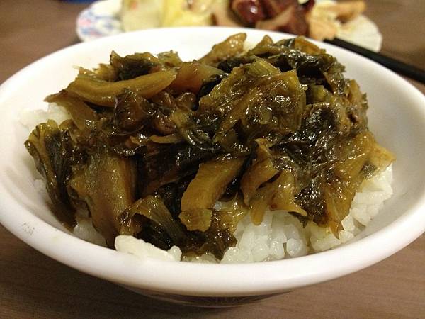 招牌的主食有梅乾菜飯,梅乾菜滷得透透透,紅燒醬汁的味道彷彿已經深入梅乾菜的靈魂一般,搭在白飯上面非常開味。不過這天不知為何白飯有點太濕,稍微影響了一些口感。