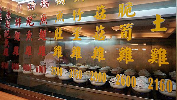 光雞湯就有好多種,從最便宜兩千出頭到最貴一萬多(有排翅,為生態不要點比較好)。在竹笙菇菇脆筍之間猶豫了半天,最後點了基本款的原味砂鍋土雞湯。