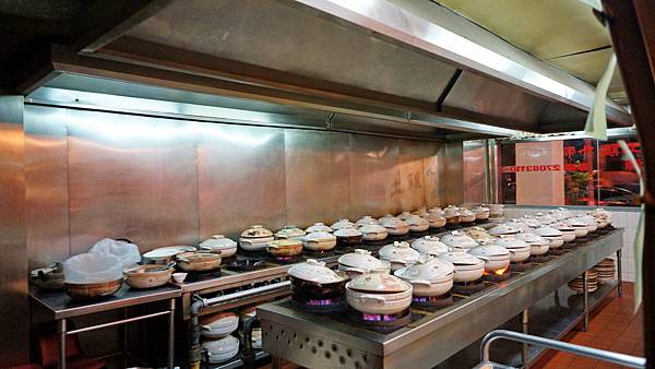 一進門就有40個砂鍋正在燉或準備燉雞湯,想想雞也很可憐,回教徒不吃豬、很多華人不吃牛、鴨太毒、羊太腥加上鵝跟魚又貴,所以幾乎大家都吃雞還有蛋當動物蛋白的來源,以動物界來說應該是被吃冠軍吧。一樓只有櫃檯跟煮雞的沒有座位,可能怕煮雞太高溫,所以位子都安排在地下室。