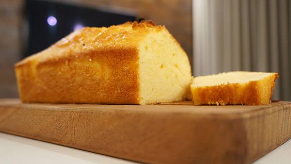其實我沒有很喜歡這個作法作的蛋糕,因為全蛋混和法並沒有把大量的空氣打進蛋裡,造成蛋糕體密度太高不夠鬆軟,我覺得有點像中西合璧的奶油發糕,但因為密度高所以奶油香味就非常濃郁,拿來配茶配咖啡都很不賴,我老婆很愛這一款。有機會再跟大家介紹我個人喜愛的分蛋打發法磅蛋糕,我覺得更好吃!