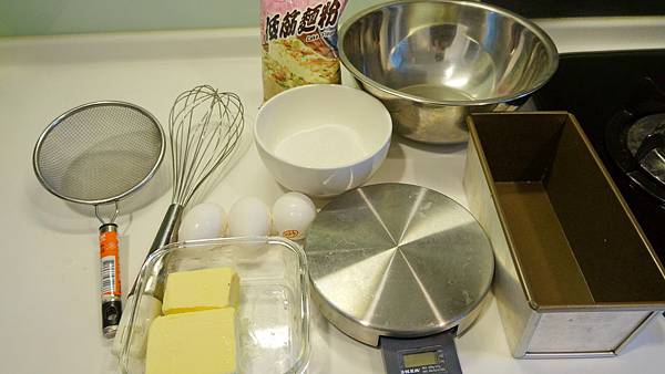 今年因為買了能蒸能烤能微波的Sharp水波爐,所以興趣更擴及了烘培。這個周末陰雨綿綿的,剛好家裡的材料也夠,乾脆就烤個簡單的奶油磅蛋糕(Pound Cake)。其實磅蛋糕就是一磅奶油一磅低筋麵粉一磅糖跟一磅蛋做起來的蛋糕,簡單來說就是每個材料各1/4的比例。據說本來是英國人的玩意(因為是英制單位嘛),我買的食譜上說法國人稱為四分之四蛋糕(Quatre-Quarts),而且還衍伸出四種不同的做法,盡顯法國人在甜點上的堅持與雞歪。
